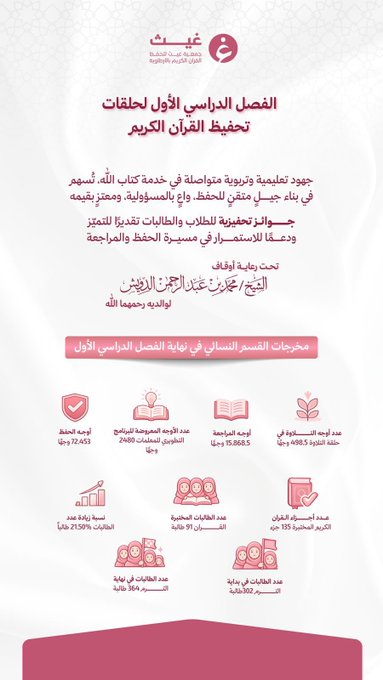 بمخرجات تعليمية متميزة.. جمعية غيث تختتم الفصل الدراسي الأول لحلقات تحفيظ القرآن